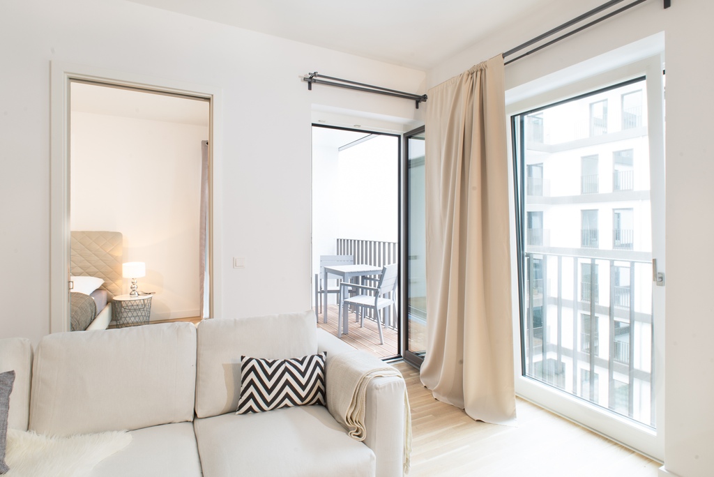 This brand new 2-room apartment was furnished in spring of 2017 by White Apartments. It fulfills the highest criteria. The kitchen is equipped with all necessary household utensils, fridge with a freezer and an oven, dishwasher, coffee machine. Double bed with a high-quality mattress.